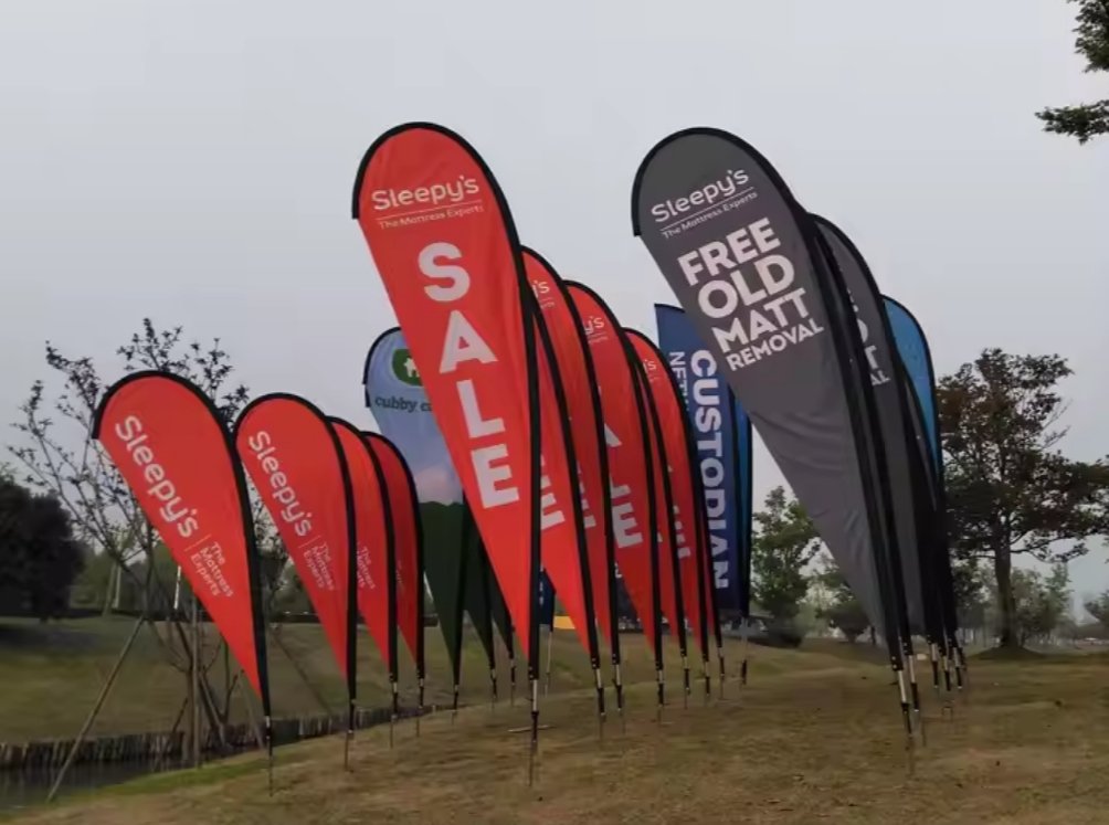 Optimisez la visibilité de votre événement sportif avec une oriflamme goutte d’eau : conseils de choix, personnalisation, installation et entretien.