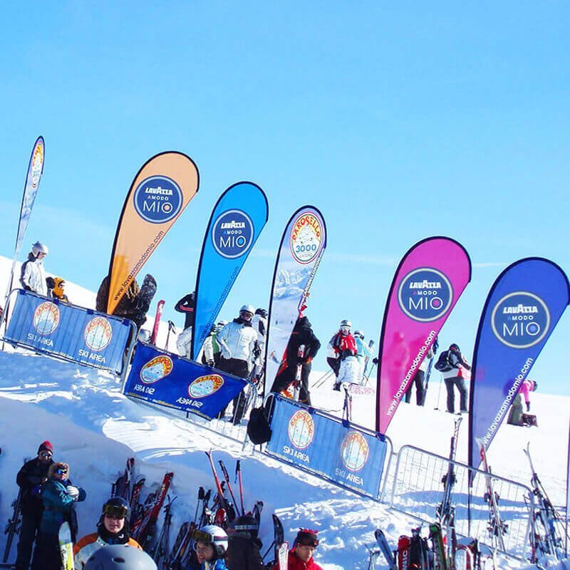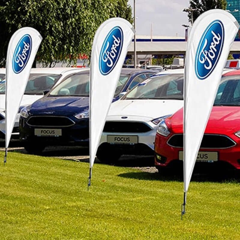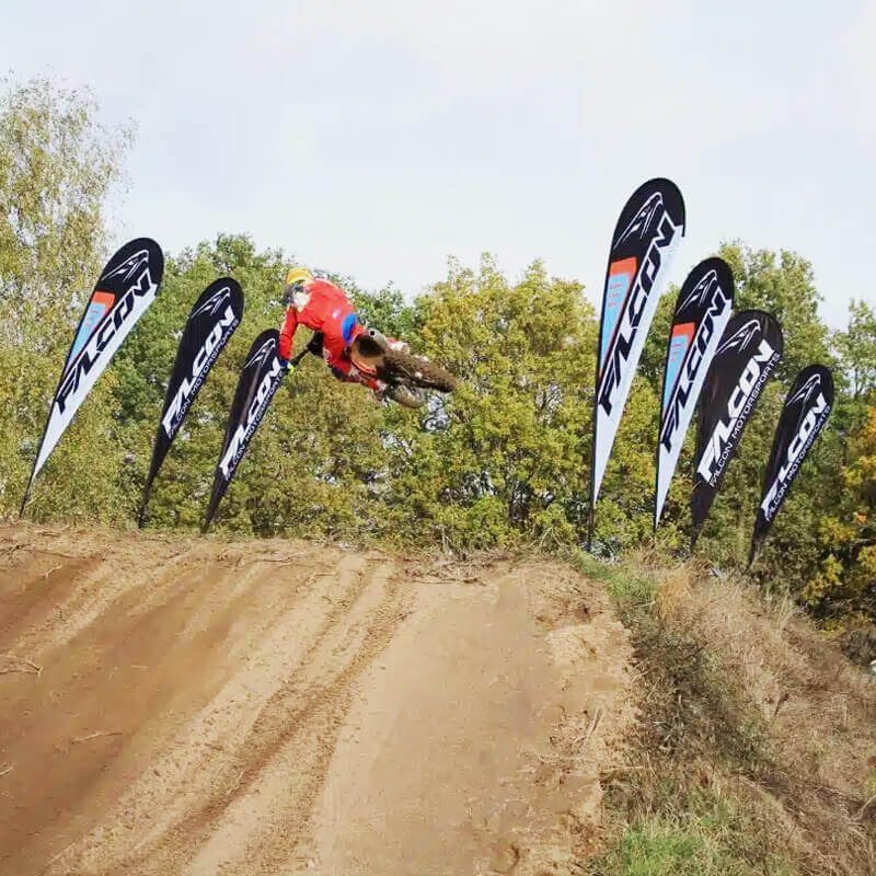 Nos oriflammes mobiles en forme de goutte sont polyvalents et s’adaptent à de nombreuses situations :